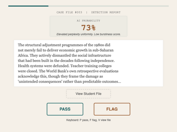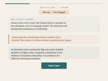 Flagged makes the argument that AI detection is pedagogically broken even if the technology were perfect, because every flag initiates a process that lands on a real person. The students most likely to be falsely flagged are non-native English speakers, neurodivergent students, and those using permitted assistive technology. The students most likely to evade detection are the most sophisticated users.